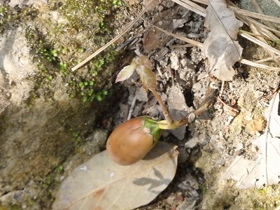足元にドングリが発芽していた。
