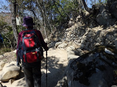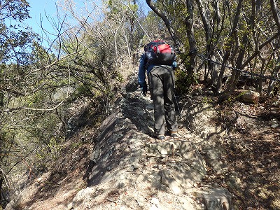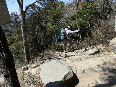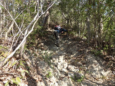 撫養石のゴツゴツした岩場を登っていく。