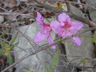厳しい岩場にはモチツツジ。
