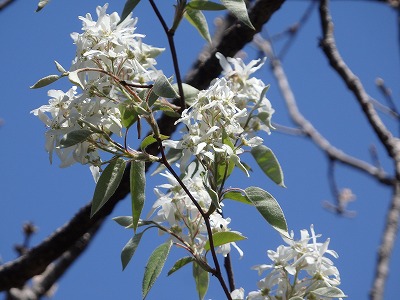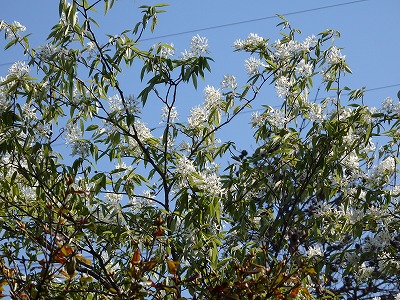 ザイフリボクの白い花が青空に映えて美しい。