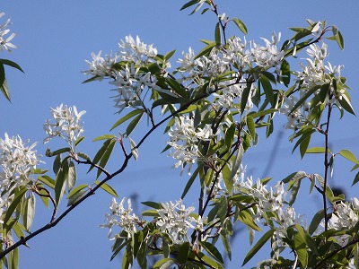 ザイフリボクの白い花が青空に映えて綺麗だ。