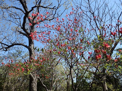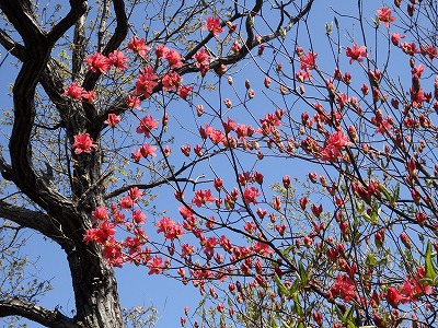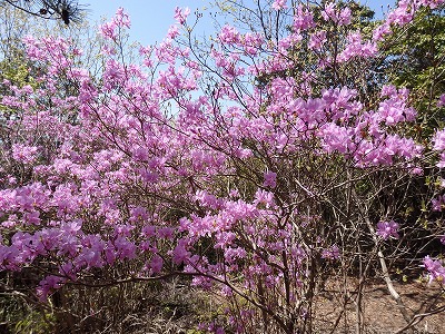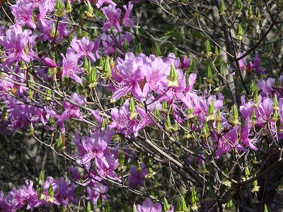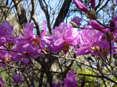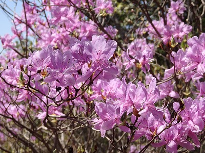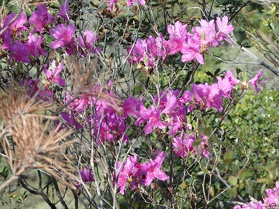 ミツバツツジが咲き誇っている。