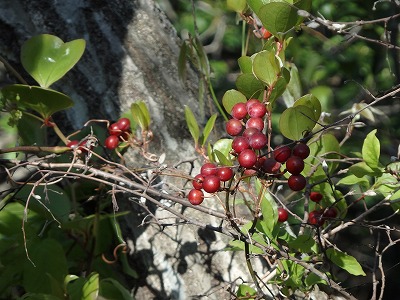 サルトリイバラの花が密集して咲き始めている。