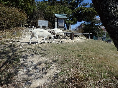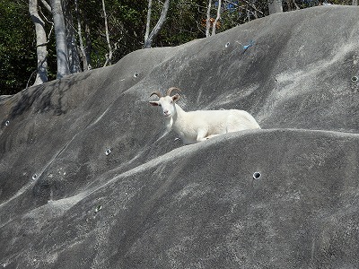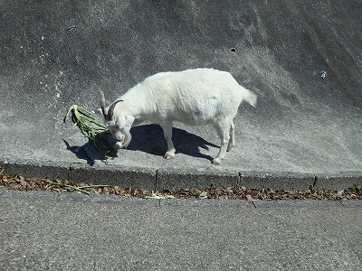 車道に出ると二匹のヤギがのんびりしていた。