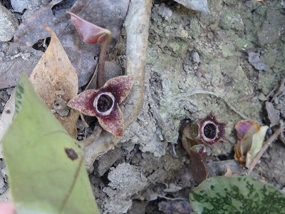 カンアオイの花とミツバアケビの蕾。