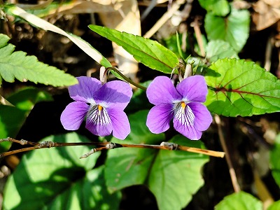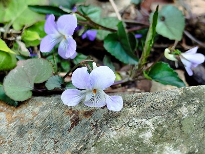 タチツボスミレやシャガの花。