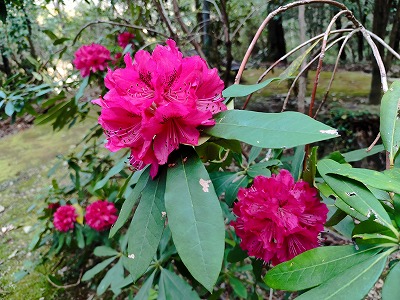 シャクナゲの花と山桜。