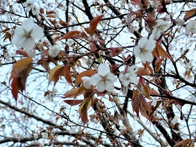 ヤマザクラが満開。