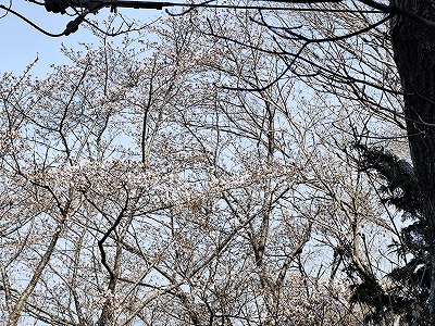 文化の森の広場に返ってくるとソメイヨシノが8部咲きくらい。