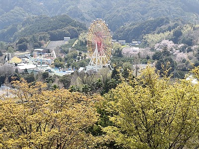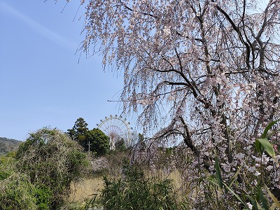 葉桜になった蜂須賀桜の向こうに阿波雅や陽光桜を見ながら昼食。