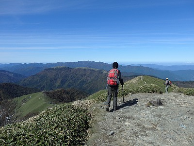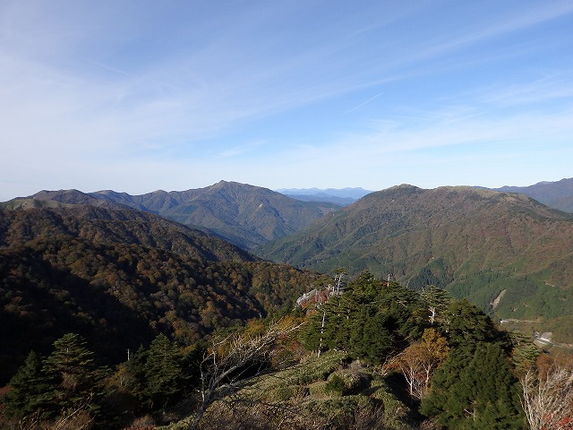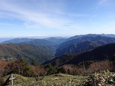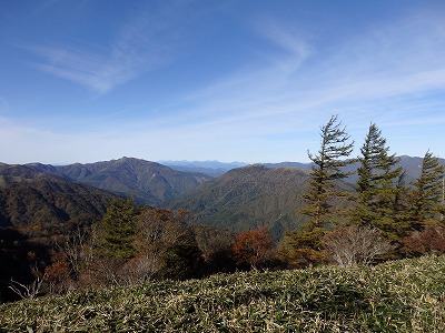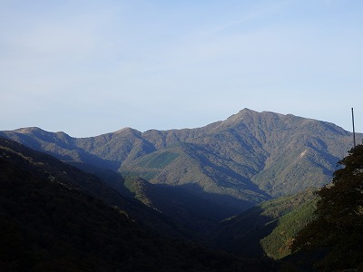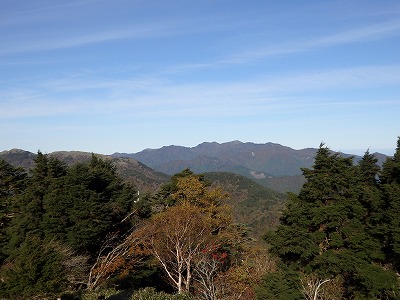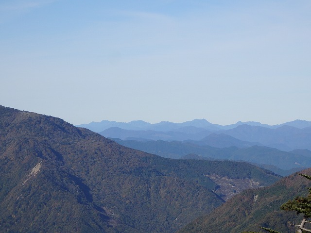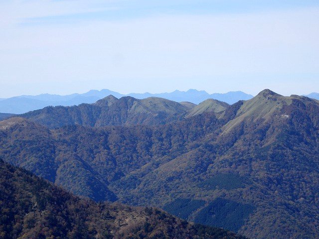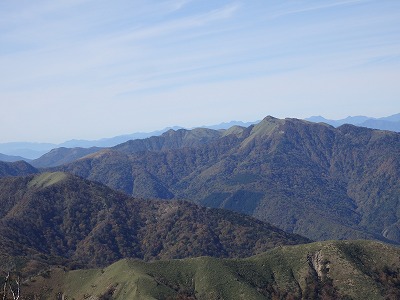 三嶺の右奥に石槌山や東赤石等の山々がくっきりと見えている。