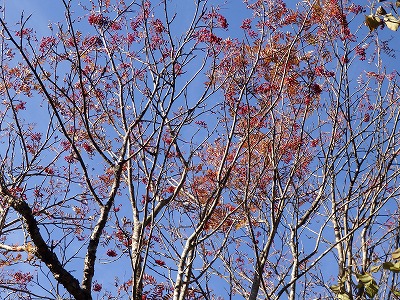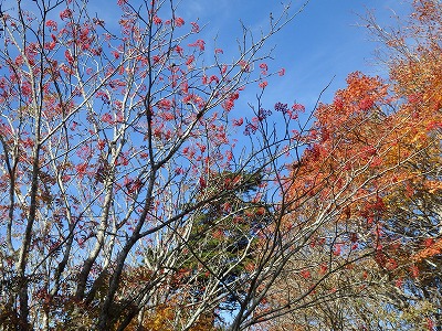 すっかり葉を落としたナナカマドの向こうに御塔石