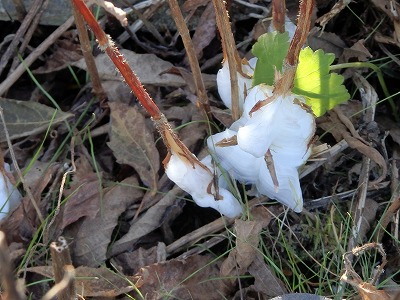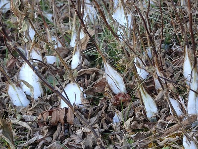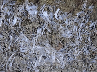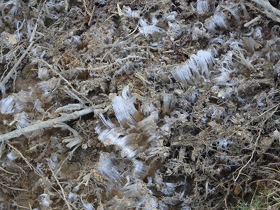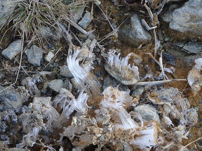 高城山が正面に見える所ではテンニンソウの枯れた茎にシモバシラ(氷華)がビッシリと出来ている。