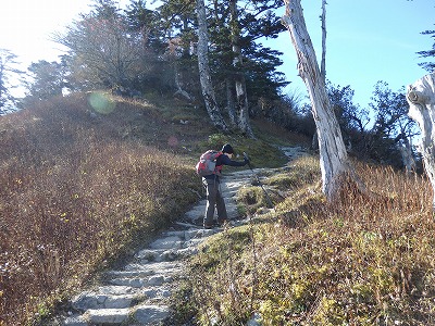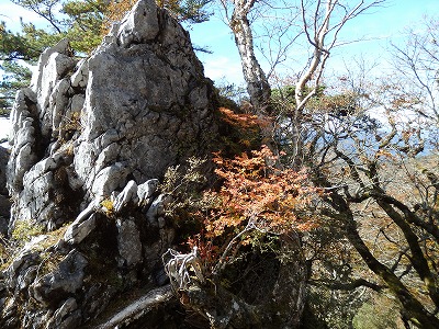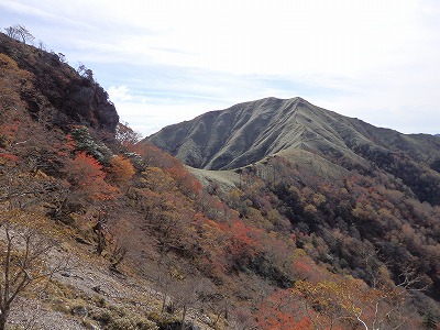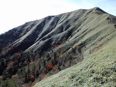 去年は錦色に染まっていた頂上直下に紅葉は終わっているようだ。