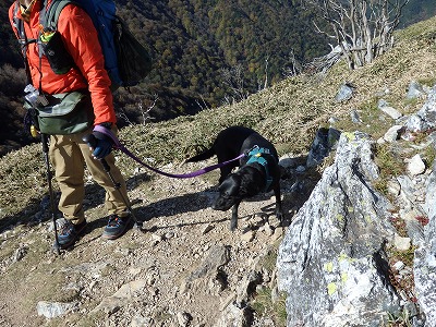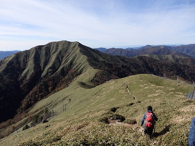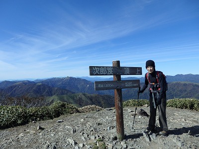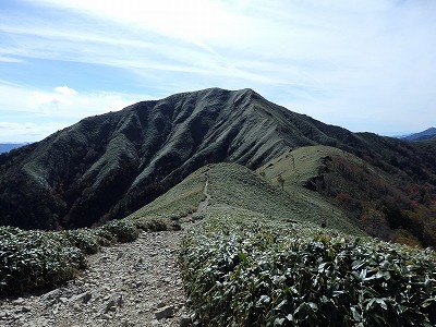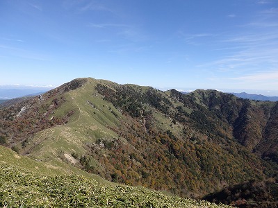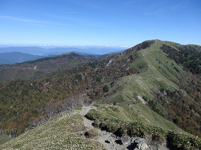 ドンドン下ってまた登り西島分岐から銀色に輝き出した次郎笈を眺める。