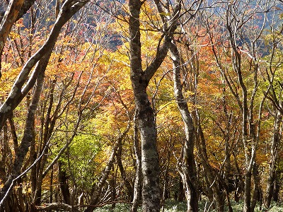 今日は、頂上付近の紅葉には遅かったが、中腹のブナやモミジの素晴らしい紅葉に出会うことが出来た。