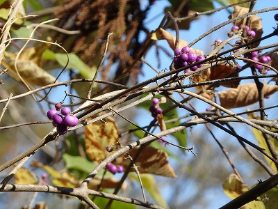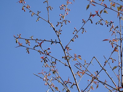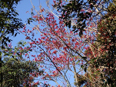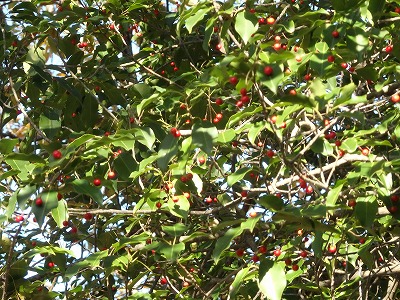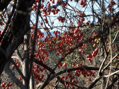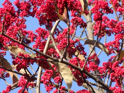 葉が落ちてタマミズキの赤い実が見事に見える。