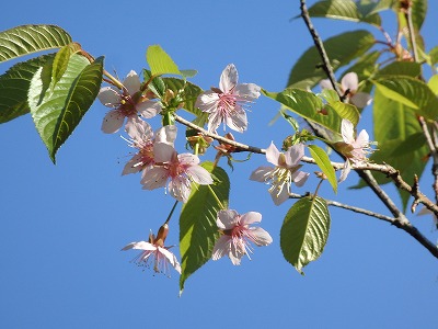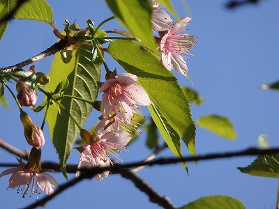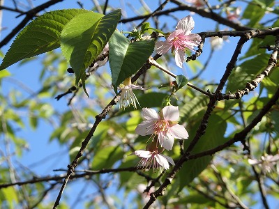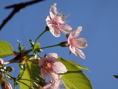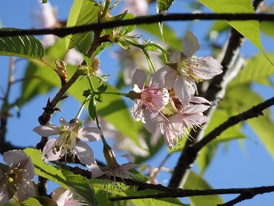 ヒマラヤ桜の咲く所にくると手前の一本は葉も出ていない。