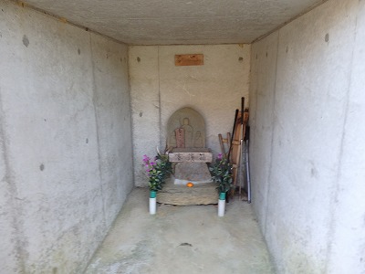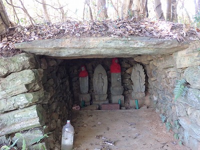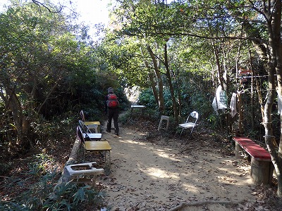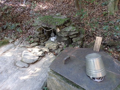 お地蔵さんにお参りしてから、ポカポカ陽気のテーブルで昼食。