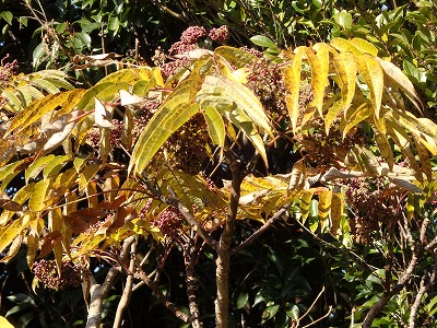 黄葉して実が一杯付いているのはカラスザンショウだろうか。