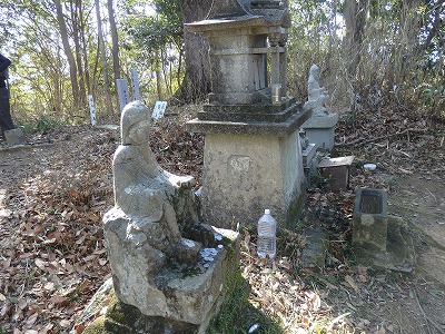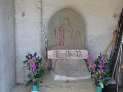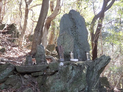頂上直下の不動尊と地蔵碑