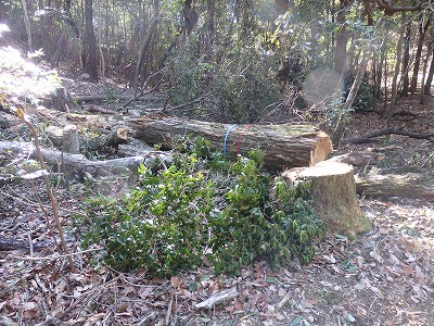 キンランの咲くところに倒木。