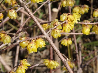 峠の石仏とロウバイと