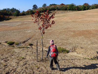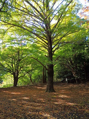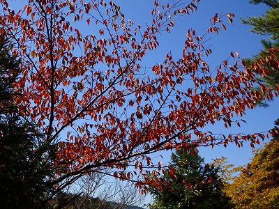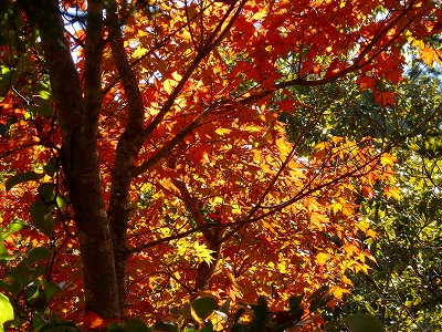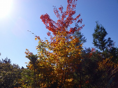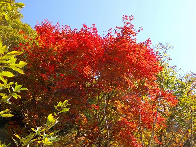 遊びの広場に向けて下っていくと、真っ赤に紅葉したモミジがあった。