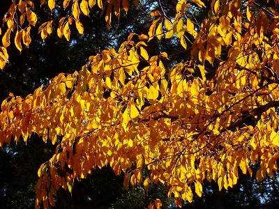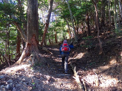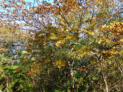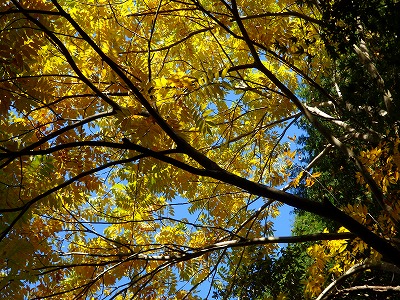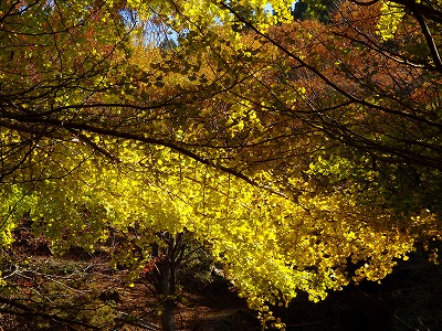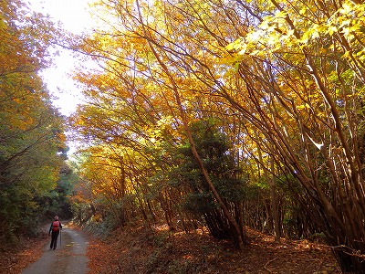 山の神様にお参りしてシロモジの紅葉が綺麗な道を行く。