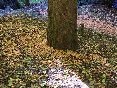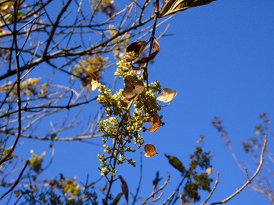 如意輪寺の駐車場のイチョウはまだ色付いていない。