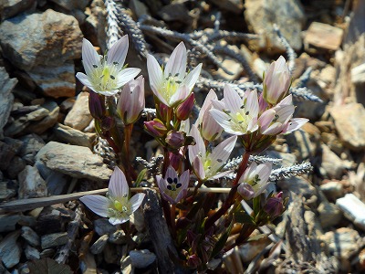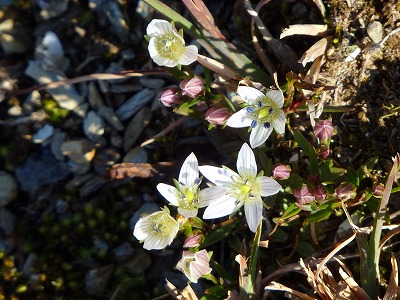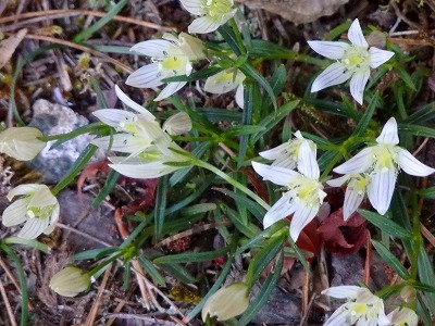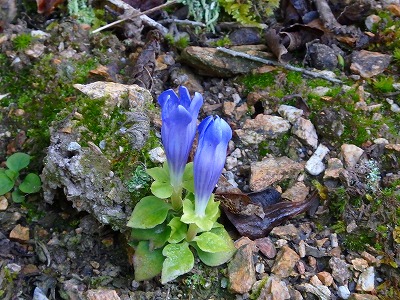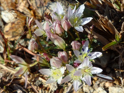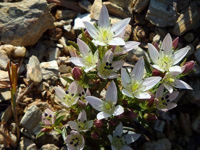 草が枯れてザレ場のようになった所にセンブリが咲き誇っている。