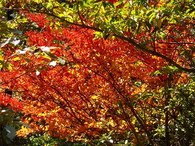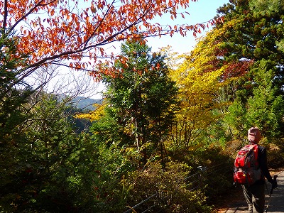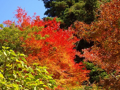 山肌にはもう真っ赤に紅葉しているモミジも有る。