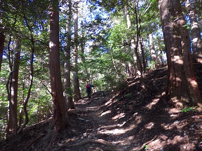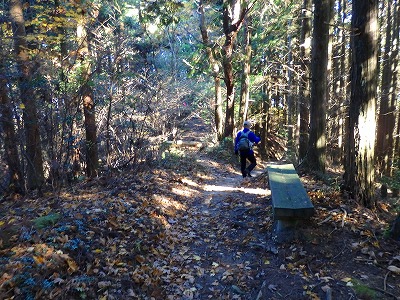 先週、フライトパークへの山道を整備したとの話を聞いたので東屋横から降っていく。
