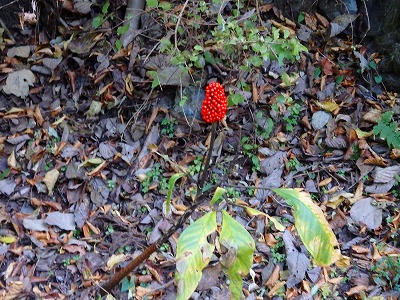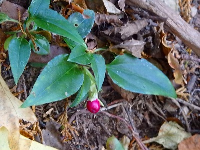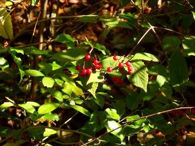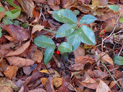 今年は殆ど見ることが出来なかったツルリンドウの赤い実が一個だけ。
