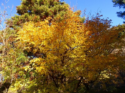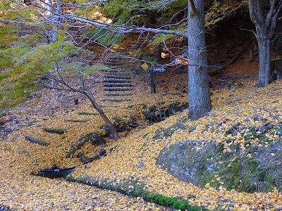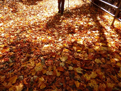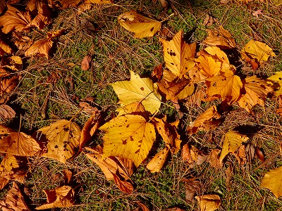 ウリハダカエデが黄色の葉を落として絨毯のようだ。