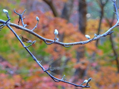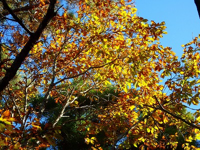 山の神様に挨拶して行くとコナラも綺麗に色付いている。
