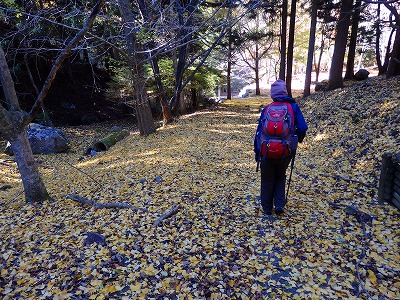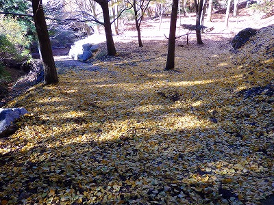 イチョウの落葉が黄色い絨毯のように広がっている。