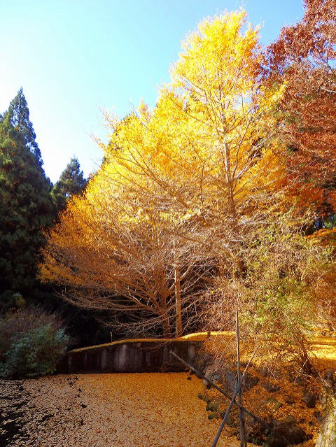 展望台から降りてきた所の三本の大銀杏は全て葉を落としていた。