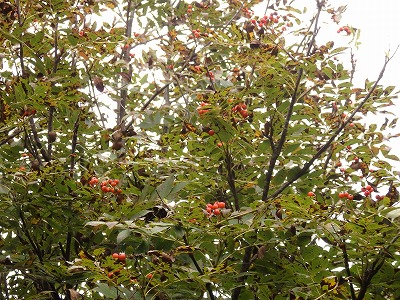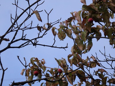 旭ヶ丸頂上のヤマボウシの実はすべて落ちてしまった。