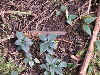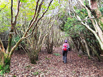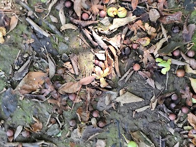 ツツジはまだ色付いていないが、落ち葉が多い。