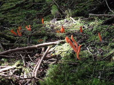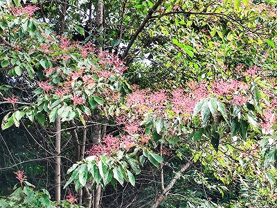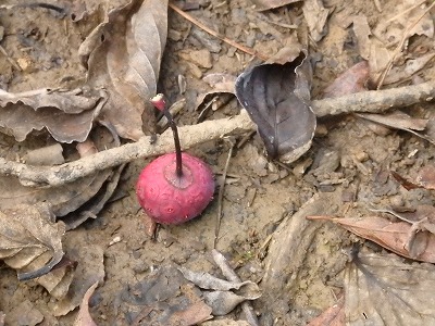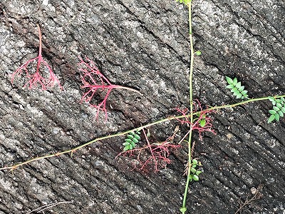 クマノミズキのサンゴのような花柄が道路に落ちている。