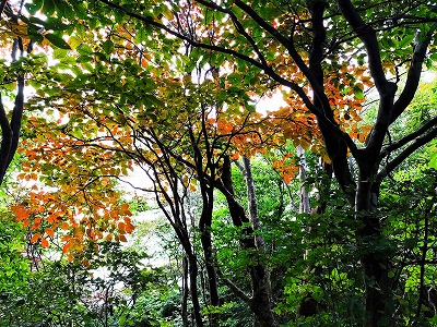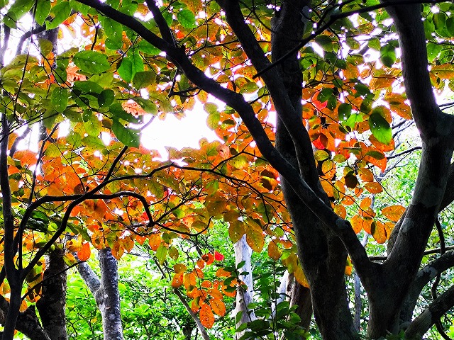 シラキの葉は、紅葉が進むにつれて色を変えるので、そのグラデーションが美しい。
