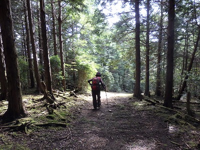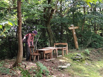 頂上は日が差して暑いのでやっほーベンチまで降りてきて休憩。