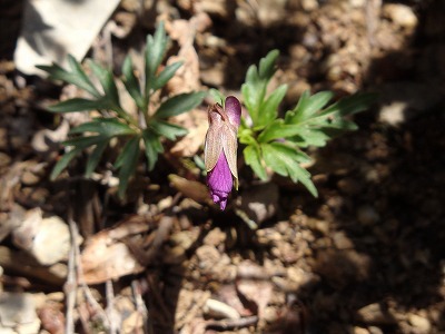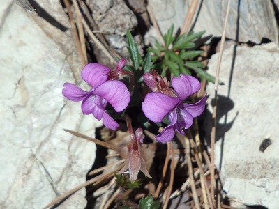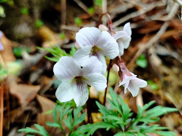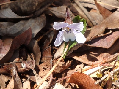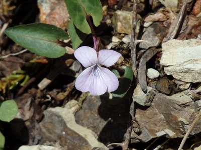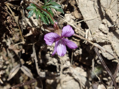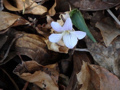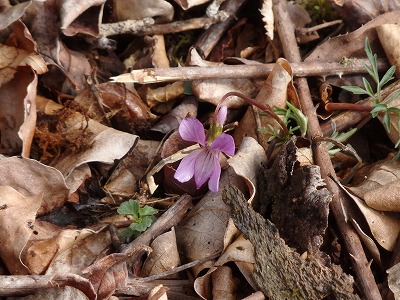 高鉾山に向かうとナガバノスミレサイシンが咲き始めている。