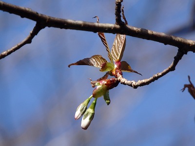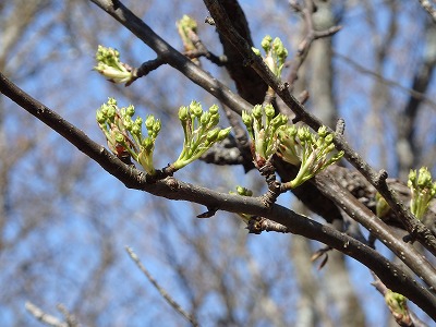 ヤマザクラとヤマナシの蕾。