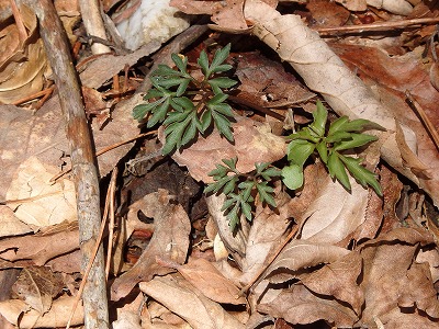 カタクリの葉が沢山出てきている。