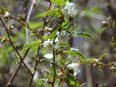 シコクブシの葉とキブシの花。