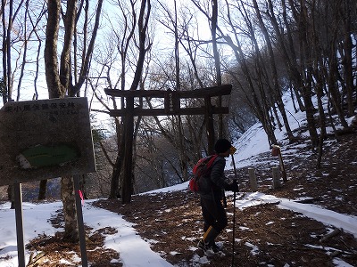柴小屋神社鳥居のあたりまで来ると雪が少ない。