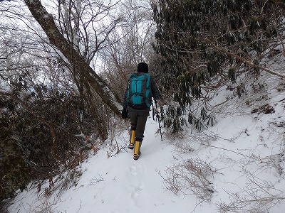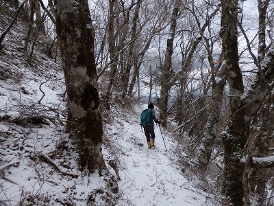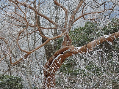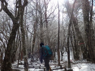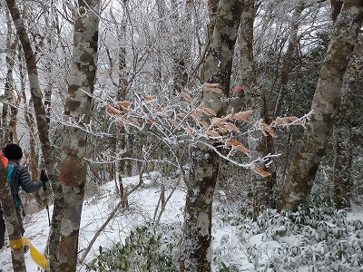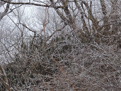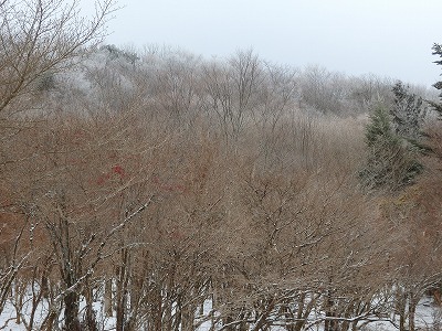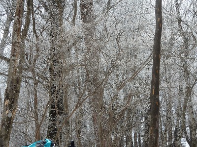 時々青空がでてきたので期待したが、大道丸につく頃には霧氷は消えてしまった。
