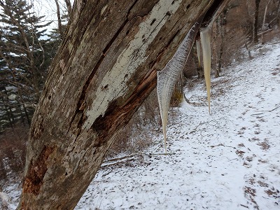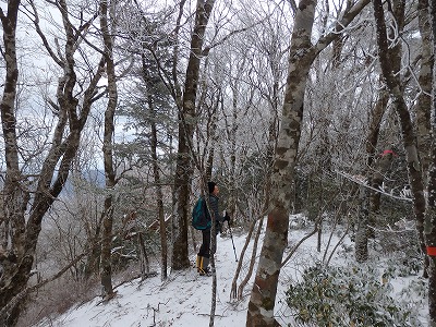 北から風が吹き上げてくるところには、また霧氷が出来始めている。
